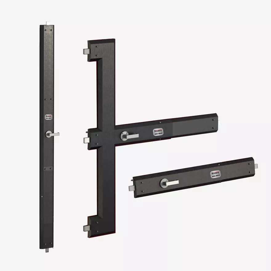 Explore the Rivers Four Point Lock Series 420, offering enhanced four-point security with external lever hardware and cylinder protection, engineered for high-risk environments requiring maximum access control.Model F Four-point Lock